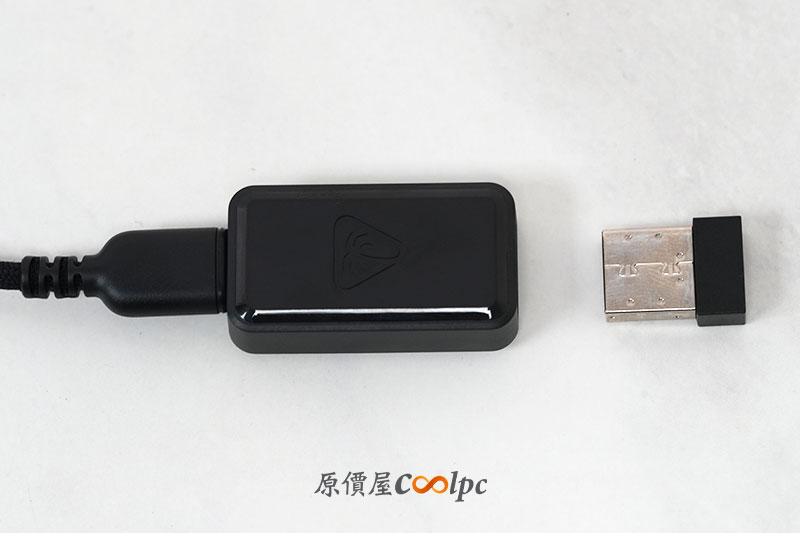 隨附 2.4GHz USB 接收器與轉接器,可將接收器延伸至桌面前方,降低干擾、提升連線穩定度,對電競玩家來說非常實用。
