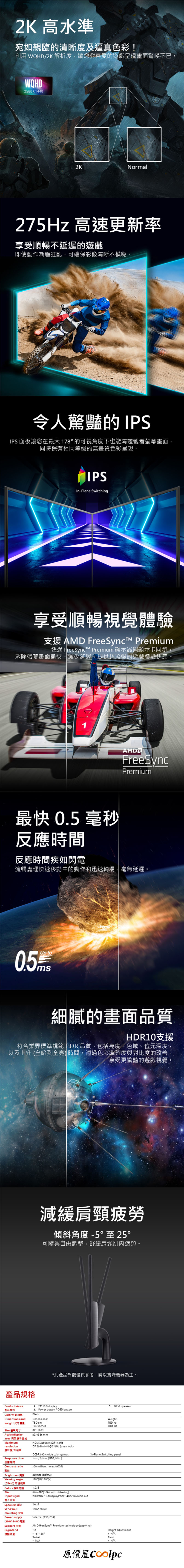 其他: AMD FreeSync™ Premium 、HDR10 、35% PCR 環保材質