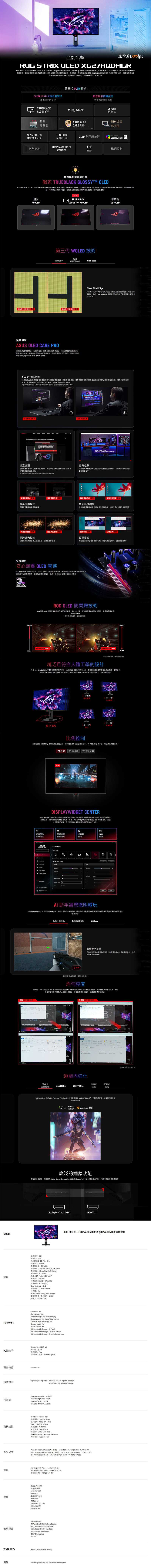 ROG STRIX XG27AQWMG〈2H1P/WOLED/280Hz/HDR500〉可升降旋轉 ,$19900↘$17888