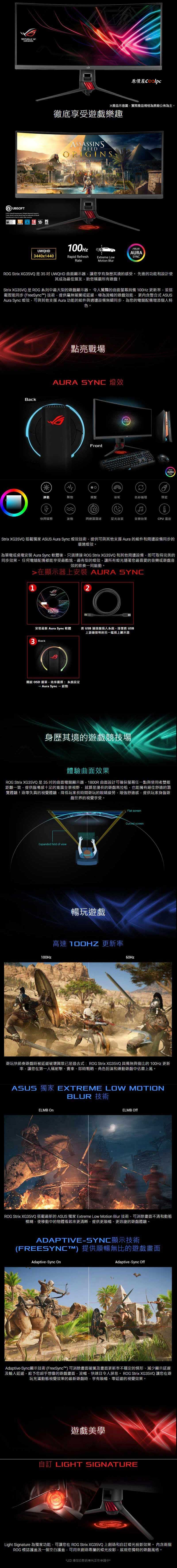 華碩 XG35VQ(ROG/1H1P1MP/1ms MPRT/VA曲面/100Hz/無喇叭/Adaptive/Free-Sync) $23500 官網