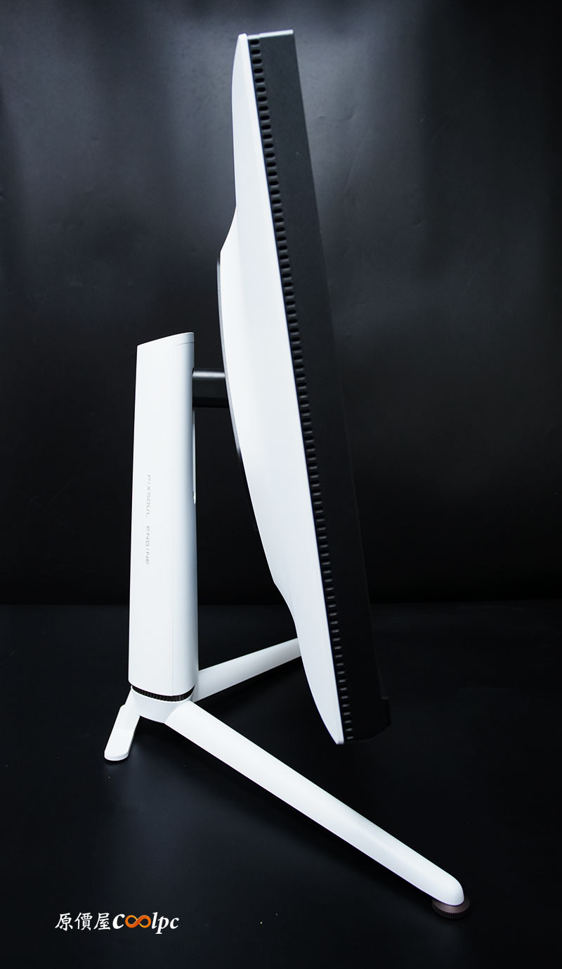螢幕側邊的散熱孔設計,這顏色其實還蠻有 PS5 的感覺呢~不過職這次「BenQ MOBIUZ EX321UX」也是有具備 HDMI2.1,所以要選這台玩,當然也適合啊~