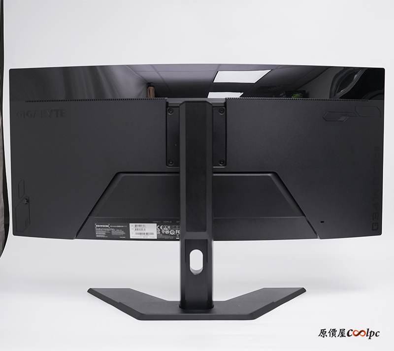 背面的部分就可以感受到1500R曲面的的弧度啦!本身也有支援壁掛方案,支援VESA 100 x 100mm壁掛規格支架。