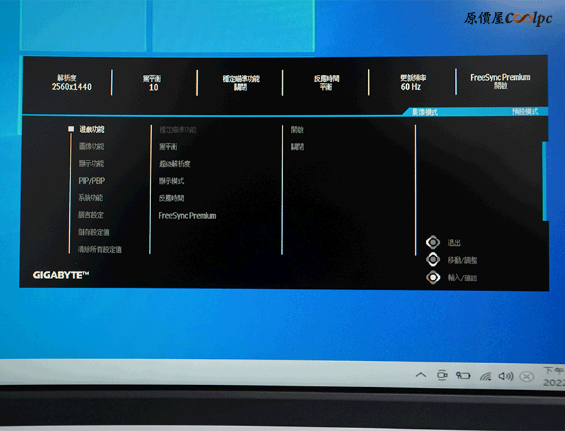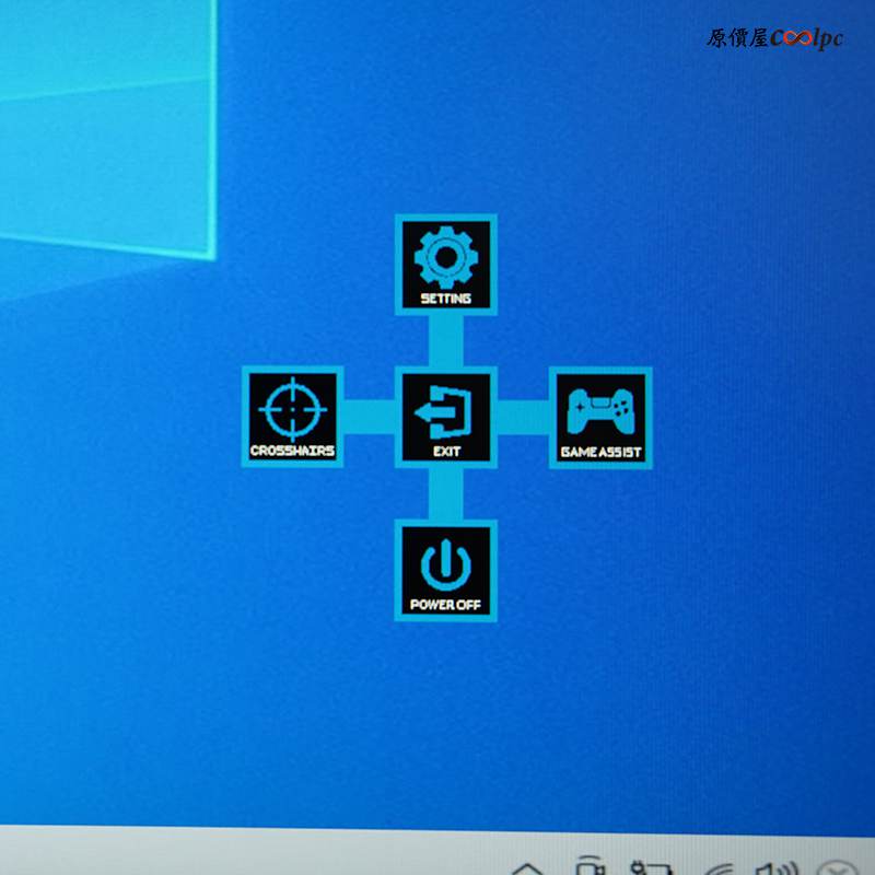 螢幕的開關按鈕具備快速設定,像是設定、輔助準心、遊戲輔助功能、電源關閉、離開等用途。
