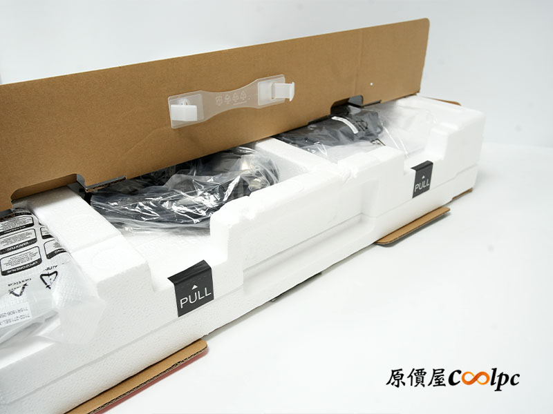 包裝內含螢幕本體、保固卡、快速使用指南、色彩校準測試報告、兩種規格電源線(110V/220V)、變壓器、HDMI 2.1 線材、DisplayPort 1.4 線材、USB Type-B 轉 Type-A 連結線和理線夾,配件齊全到位。