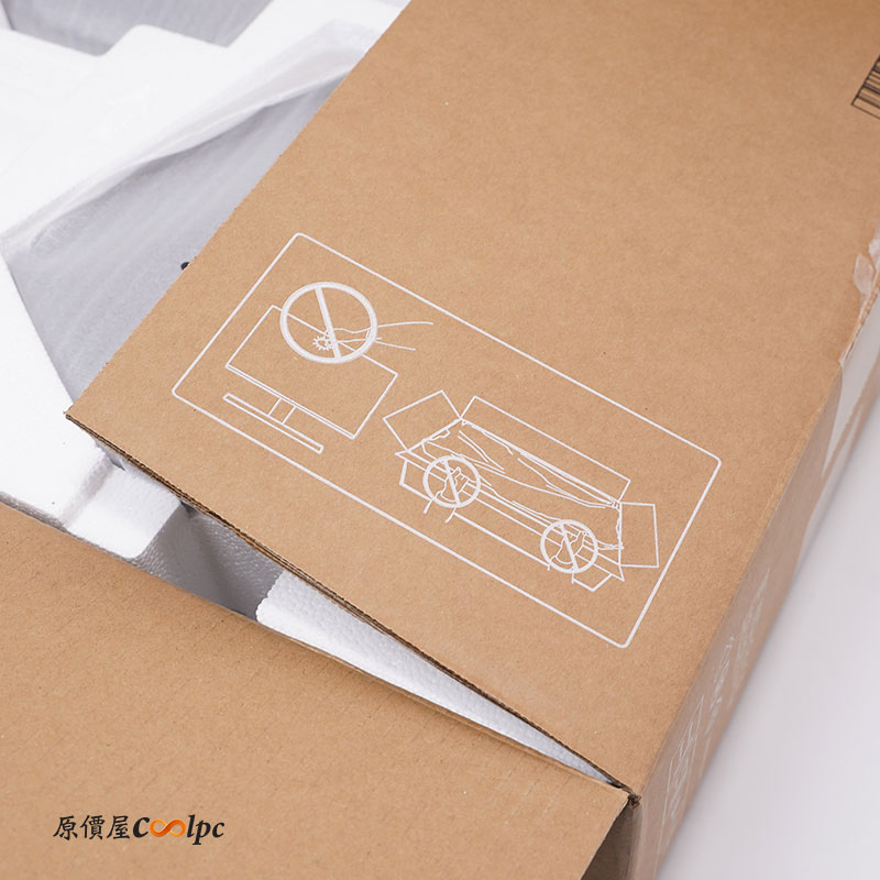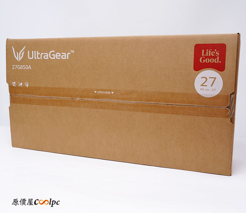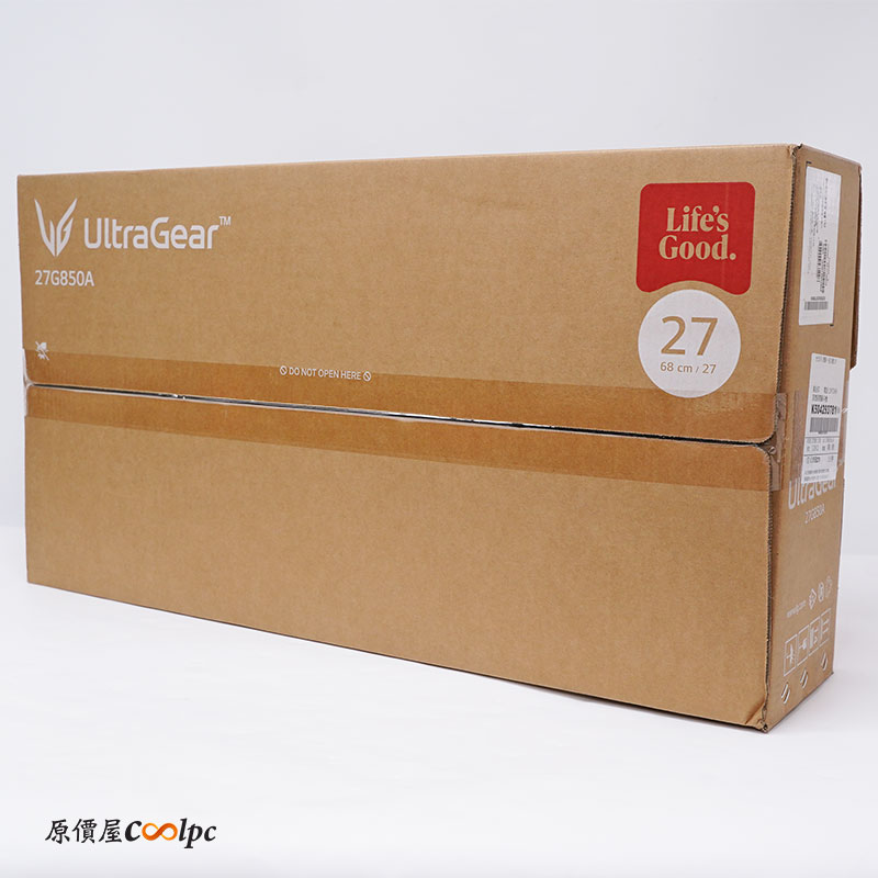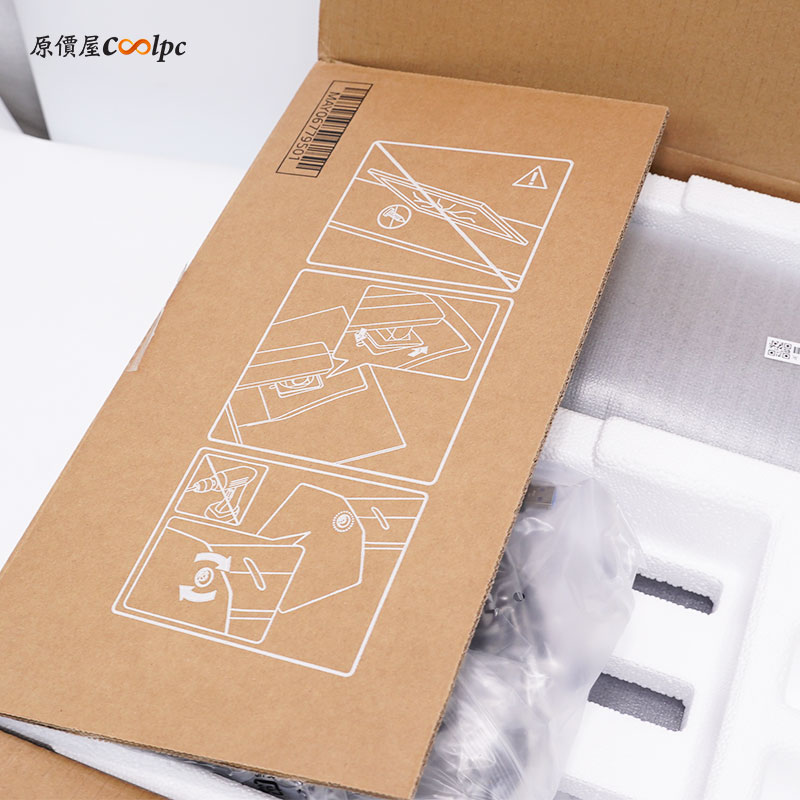 外盒採用環保紙箱,箱子上沒有太多花俏的圖案,簡單的 Ultra Gear LOGO 和 27G850A 型號 27吋標示,正中間有警示語 DO NOT OPEN HERE,另一面則是 OPEN HERE,拆封的時候要特別留意,避免打開的時候螢幕是反的。打開兩側皆有簡易的安裝教學,拿配件和螢幕得注意禁止事項,內部零件皆有厚實保麗龍保護。