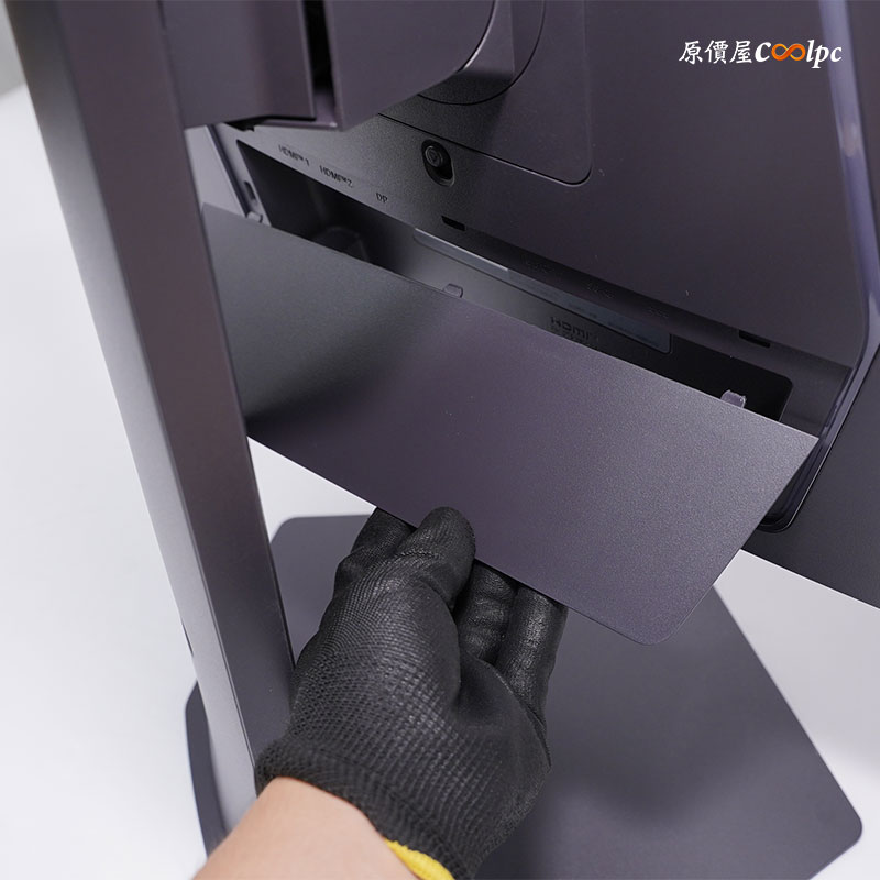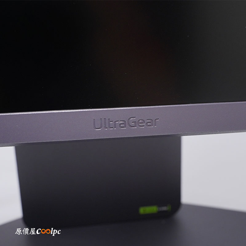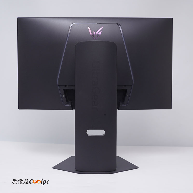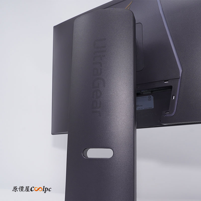 螢幕支架還有點陣圖的 UltraGear 圖案,底下還有理線孔。