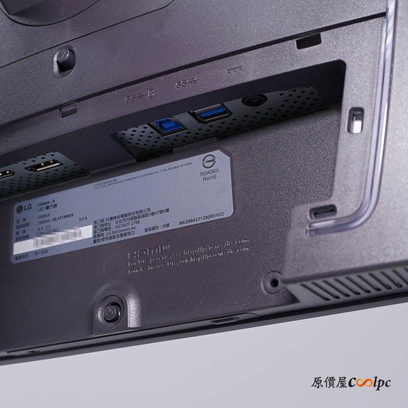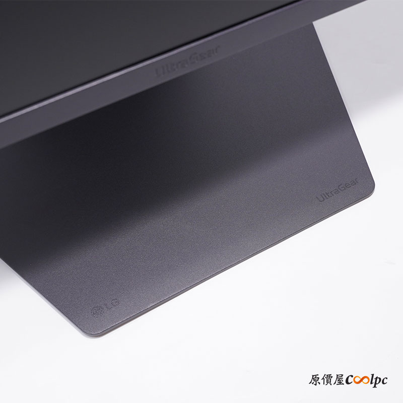 螢幕底座也有 LG 自家的 LOGO。不得不說,其底座具有一定重量,可以確保螢幕不會碰到桌子就輕易晃動,非常的穩固牢靠!