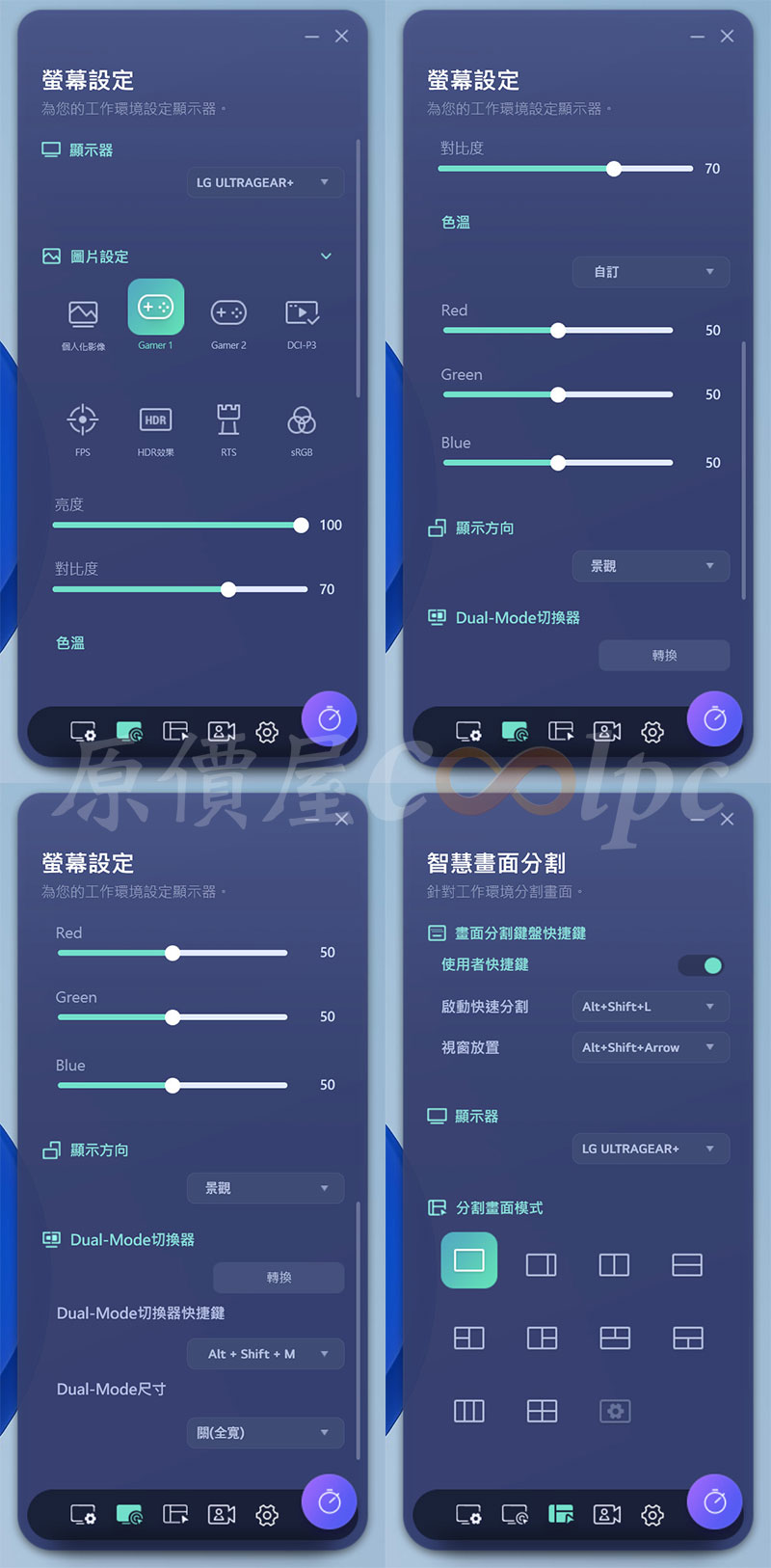 欲更快速調整螢幕設定,可安裝 LG Switch 軟體,透過軟體直接調整螢幕設定,極為便利。