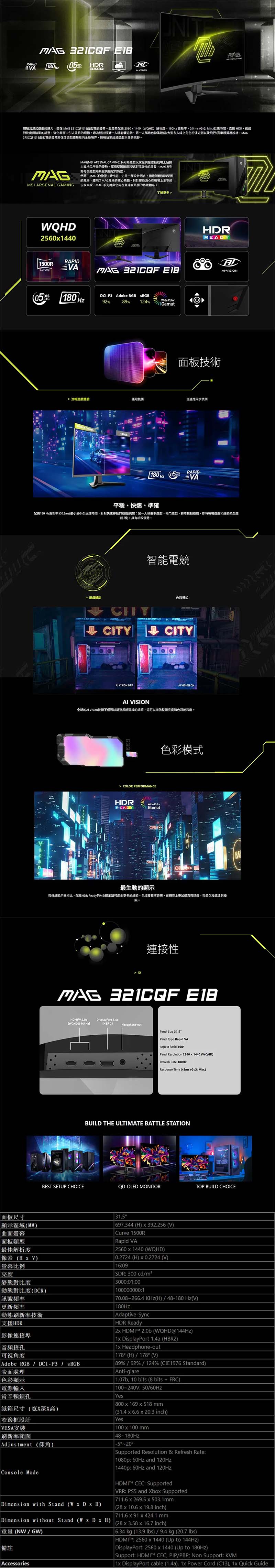 【活動品項】:MSI MAG 321CQF E18〈2H1P/VA曲面/1500R/180Hz〉, $6990
