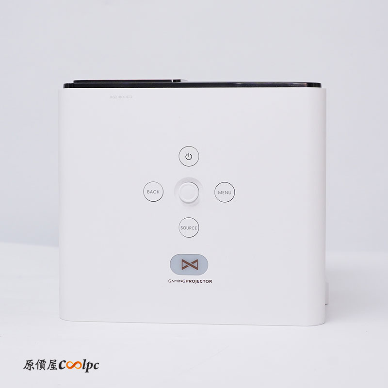 除了可以使用藍芽控制器之外,機身的上方也有開機和操作功能的實體按鈕,可以讓你操作投影機設備,底下還有一個 GAMING PROJECTOR LOGO。