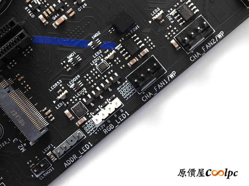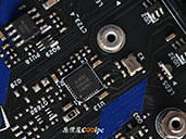 裝甲全部卸除後,PCB 板上的音速小子彩繪就更顯眼了,主板內建的無線網卡使用 Intel AX211NGW,支援 2.4/5/6GHz,速度最高達 2.4Gbps ,同時整合藍芽技術!環控晶片使用 nuvoton NCT6796D-E、風扇使用 nuvoton 3947SA 晶片控制、ASMedia ASM1074 為 USB 3.2 Gen1 hub 控制晶片,2.5G 網路晶片使用 Realtek RTL8125BG, Richtek RT3628AE 為供電主控晶片、另外是 13 顆 SiC 654(Dr.MOS)、5K 固態電容、LR22 電感。