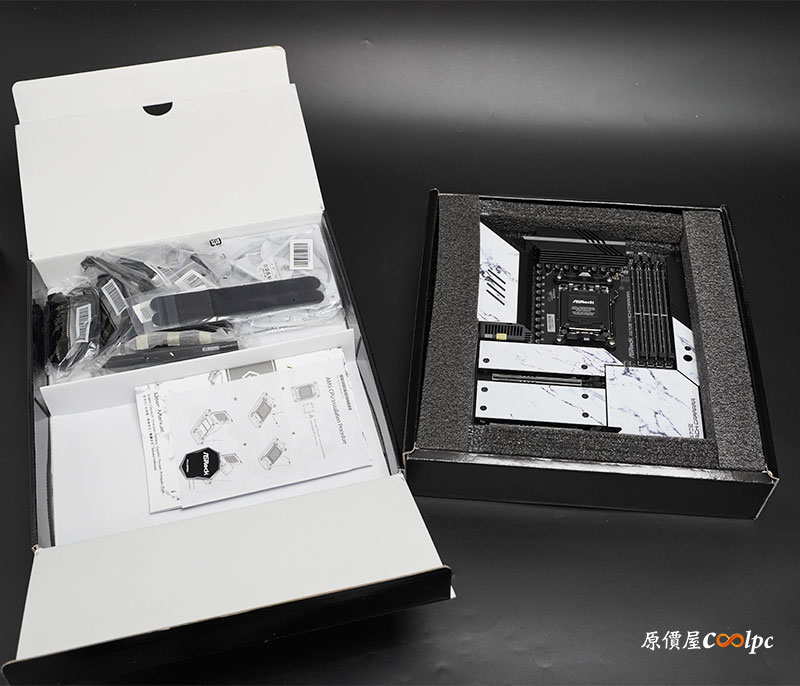 @2022/12/16 ,11:35我的主機板與眾不同最「石」尚,效能肯定棒!先前替大家介紹過i家的卡拉拉大理石主板(點我看開箱),這回換A家的大理石版本啦,兩張都是慶祝華擎二十週年而推出的限量版!直接將大理石花紋元素套用在太極主機板上,賞心悅目的白色系調,搭配索泰RTX 4090頂級好自在和白色別野組合,簡直無懈可擊呀!主機板採用超浮誇的24+2+1相供電用料,還有大理石紋路複合式VRM散熱裝甲,應付R9-7950x這顆猛獸都綽綽有餘!四個DDR5記憶體插槽,最大可安裝128GB容量,並支援AMD自家EXPO記憶體一鍵超頻技術,以及豐富的I/O可以使用,有2 x Thuderbolt 4 / USB4 Type-C、2 x PCIe 5.0 x 16顯卡和 4 x M.2通道介面(1 x Gen5/3 x Gen4)、8 x SATA 6Gb/s、2.5GbE有線網路和WiFi 6E無線網路介面,都是目前當今主流的規格,一路讓你戰到2025年!現在讓我們一起來看看它的開箱吧。