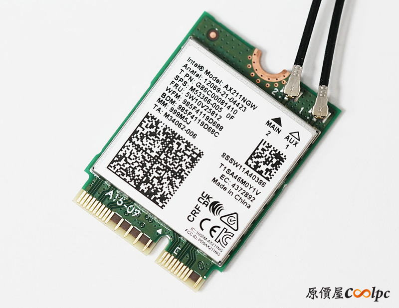 WiFi 7網卡預裝在側邊M.2 插槽 (Key E,2230),待會拆卸裝甲後會一併露出網路卡型號。