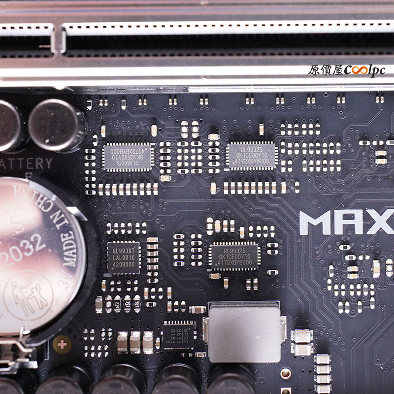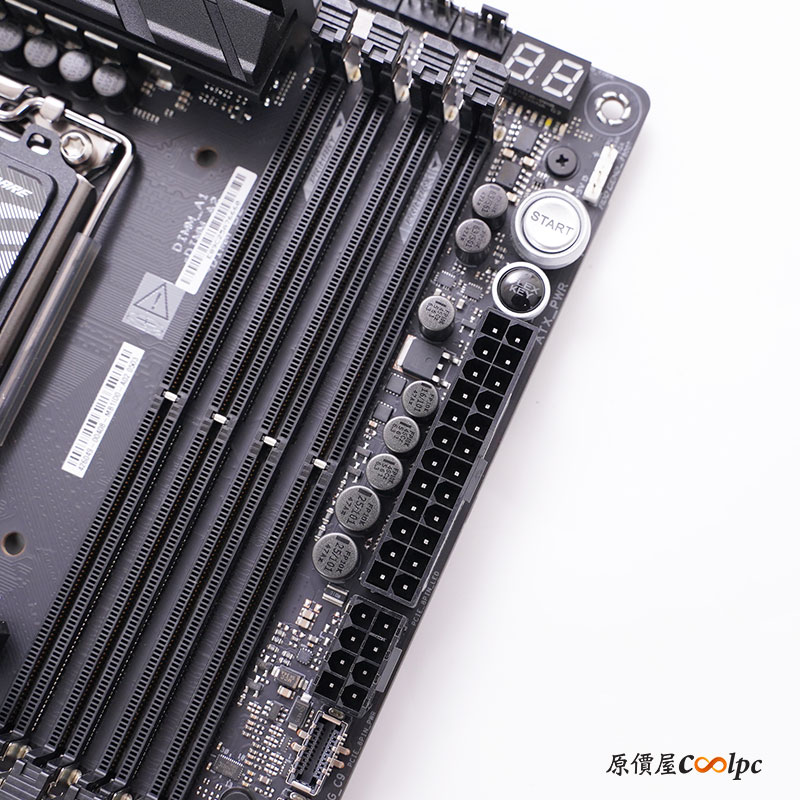 CPU 和 MB 供電分別為 8+8、24 Pin 以及旁邊的 PCIe 插槽都是實心針腳設計。