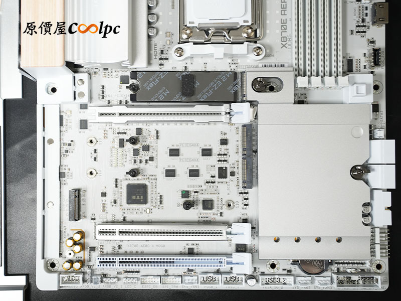 記憶體旁還有除錯燈號 (Debug LED),讓專業 DIY 玩家在進行硬體除錯或超頻設定時,能第一時間精準掌握系統狀態。
