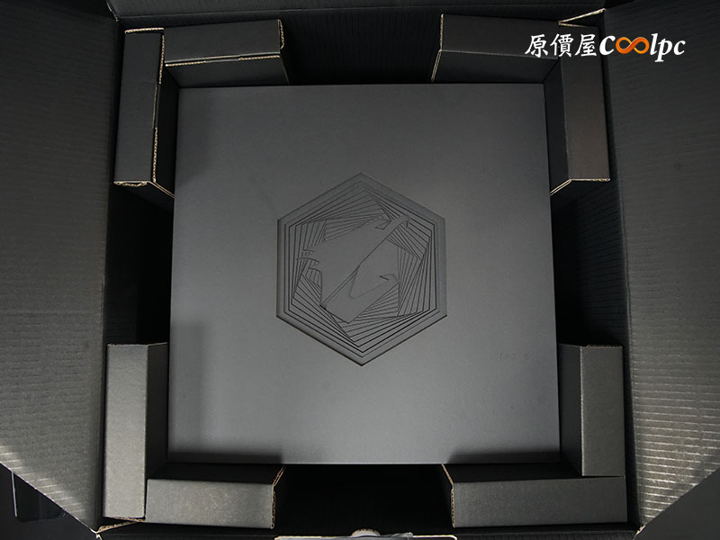 開箱後,映入眼簾的是透過精密切割的 AORUS 鷹神圖騰,小編拍照時是白天,攝影棚剛好有道陽光射下來,恰好展現出旗艦級 AI TOP 系列獨特的高質感。