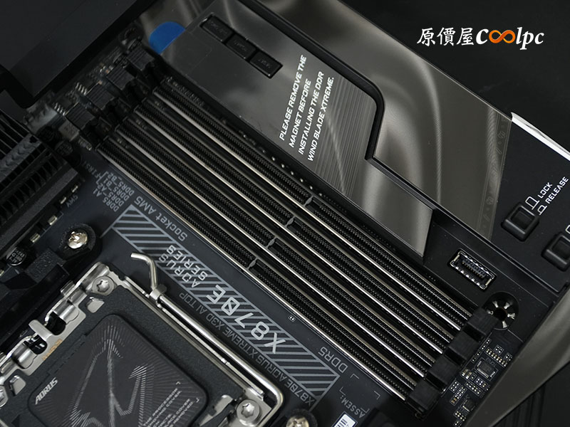 最後讓各位看一下那夠氣派的 DDR Wind Blade XTREME 散熱模組和 M.2 Thermal Guard XTREME 散熱器裝上的樣子。選這張主機板必配海景房吧!
