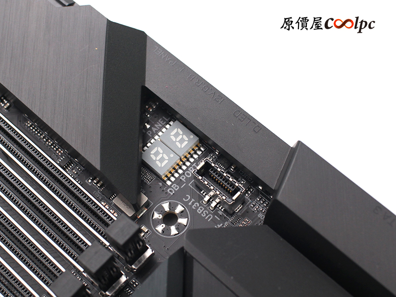 往記憶體插槽旁邊看,還有DEBUG指示燈,以及1組前置USB 3.2 Gen2(Type-C)插座。