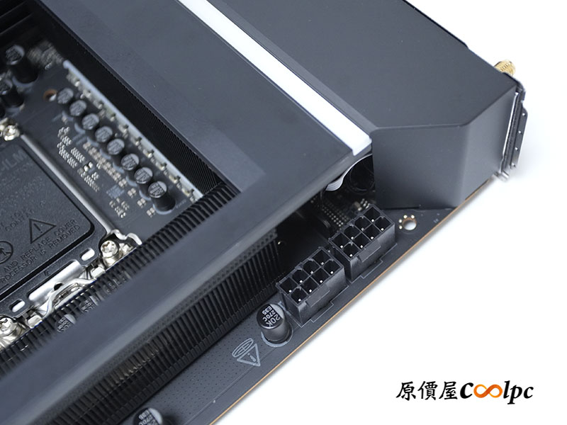 恩傑 N9 Z890 為該系列最高階的主機板,因此在 Mosfet 散熱使用大面積覆蓋,確保能發揮最頂尖的性能。主板尺寸為 ATX、20+1+1 相供電,CPU 供電使用 8+8Pin 實心針腳。