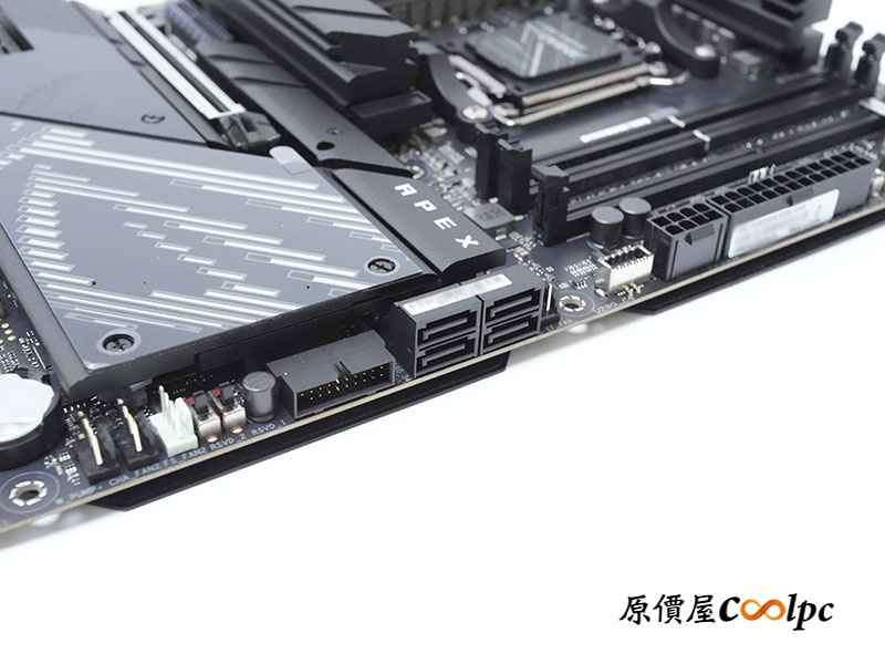 PCIe 提供 2 組 PCIe 5.0 x16(x16 or x8/x8 modes)裝甲強化插槽,一樣都具備 Q-Release Slim 設計,額外提供 1 x PCIe 4.0 x4、1 x PCIe 3.0 x1 插槽。