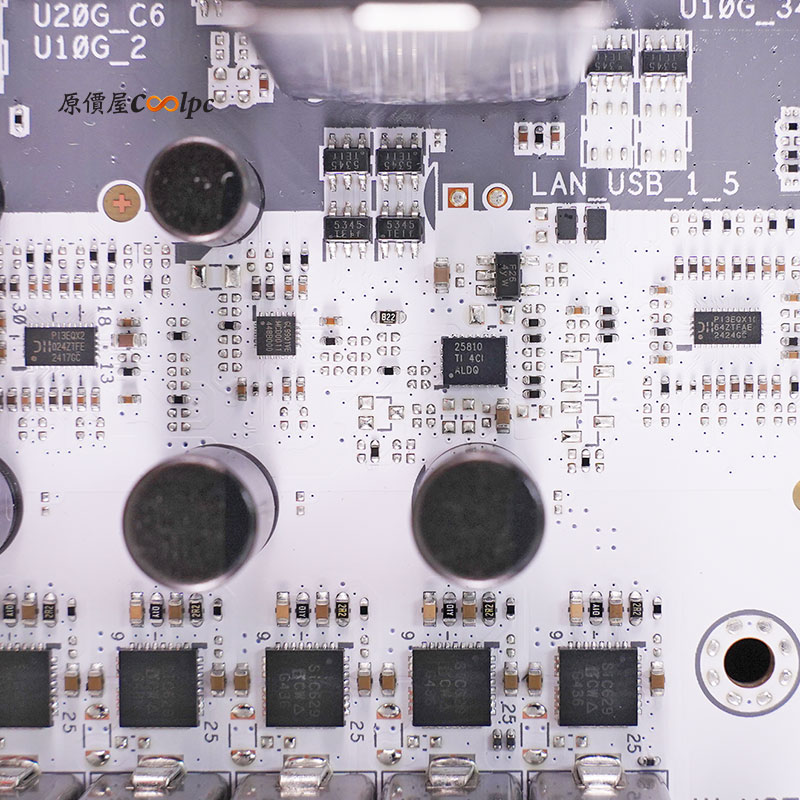 只要看到主機板有 BTF 三個英文字,肯定就是背插式主機板了!主機板為 ATX 規格設計,並且用了一塊白色造型遮蔽將部分零件覆蓋起來,讓整張板子看起來更乾淨一致!