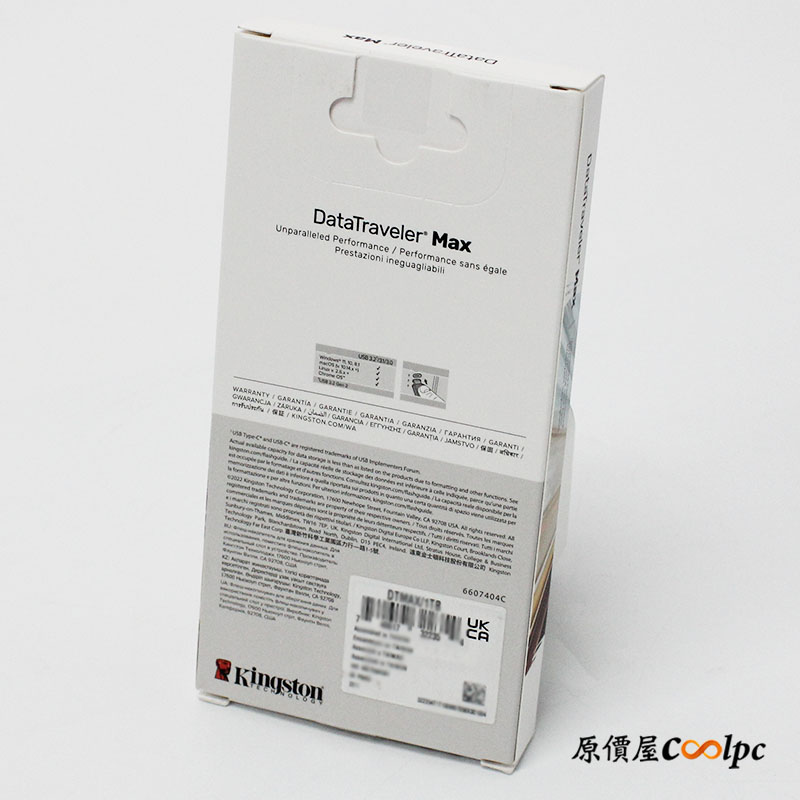 上頭可見 DataTraveler MAX 1T 型號字樣,就怕你不知道的高速讀寫 1000MB/s Read、900MB/s Write 也清楚寫在上面,此型號為 USB 3.2 Gen 2 (10Gbps) 支援 USB Type-C 接頭。