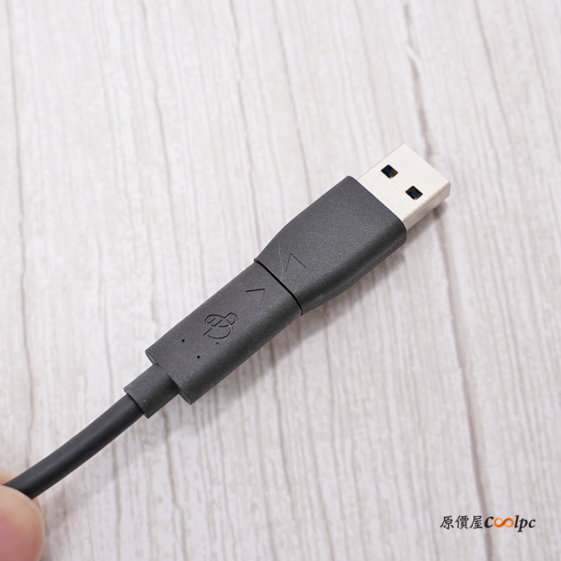 如果你的設備比較老舊,沒有新的USB-C / Type-C介面,可以安裝USB-A / Type-A轉接頭,只要照著線材的缺角與箭頭方向安裝插上即可使用。