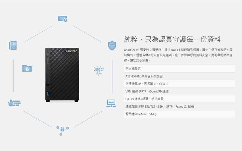 明晚就是小年夜了!各位是否已經提早回家團圓,準備過年了呢?全員到齊就先拍張大合照,接著上傳到雲端保存一輩子啦!華芸 AS-1002T v2 2Bay NAS(網路儲存裝置)的功能性多元,你可以把他當作雲端資料、照片、影片儲存空間、BT掛載、多媒體伺服器,甚至到進階的NVR監視系統應用皆可!另外可利用RAID 1磁碟陣列(磁碟鏡像)來保護資料,亦可使用Btrfs檔案快照系統,即時建立快照與備份資料,透過還原的方式確保資料完整性,完全不受勒索病毒威脅,同時提供Dropbox、Google Drive、OneDrive等跨平台的雲端備份方式!硬體搭載Marvell ARMADA-385雙核心(1.6GHz)、512MB DDR3記憶體,最大可擴充2顆16TB硬碟,若搭配擴裝硬碟設備,最大總量可擴充到10顆16TB(160TB)硬碟!I/O提供2組USB 3.2 Gen1,你可以另外擴充USB外接硬碟、USB印表機、USB無線網卡等,Gigabit Ethernet介面更讓你不用擔心傳輸速度問題!所以說它不僅適用於一般家庭用戶,更可達到中小企業的基本需求!