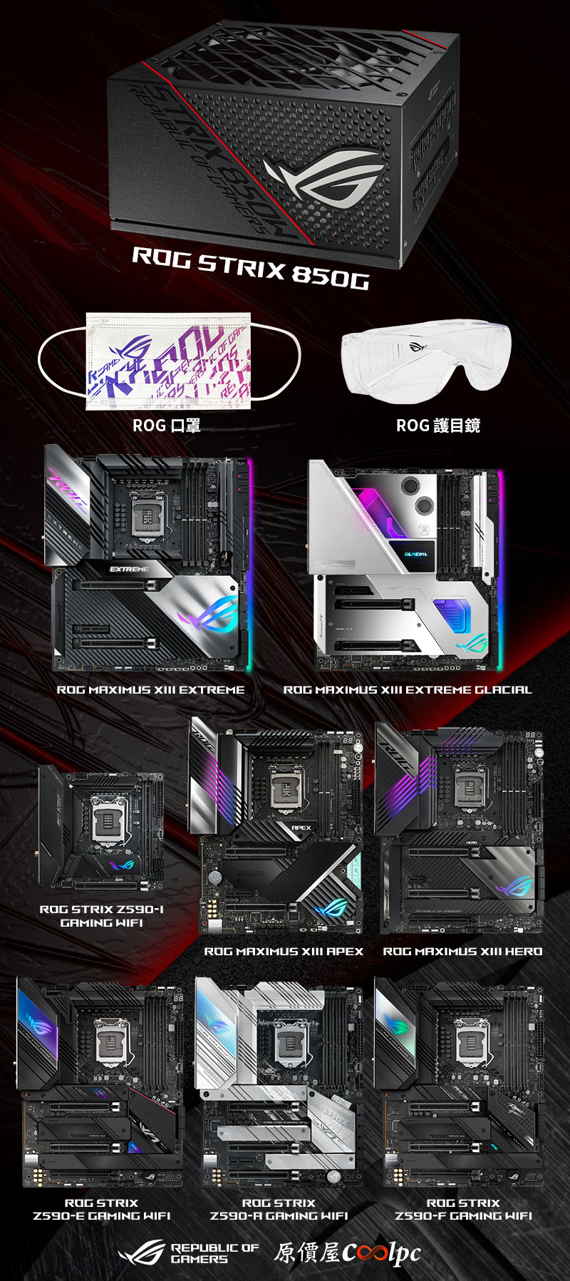 加入巔峰新秩序,現省三仟!華碩 ROG Z590 系列主板再送口罩+護目鏡!