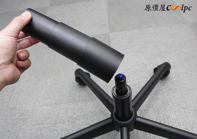 再往下則是四級氣壓棒和鋼製五星椅腳,這前面組裝時已經介紹過,也是靠他們才能維持整張椅子的穩定。