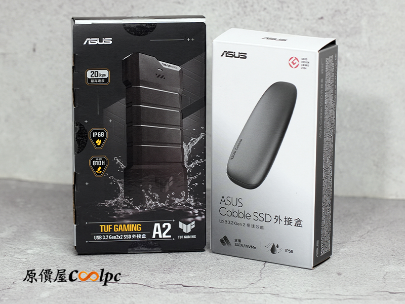 就小編來看這兩款硬碟外接盒可是各有千秋!ASUS Cobble SSD 外接盒獨特的卵石外型設計結合了時尚與效能,而 TUF A2 M.2 USB硬碟外接盒主打無可匹敵的耐用性,那獨特的棱紋設計有一種軍用 CONEX 貨箱的感覺!速度方面前者是 10Gbps 的 3.2 Gen 2×1 Type-C,後者是 20Gbps 的 USB 3.2 Gen 2×2 Type-C 介面,基本上都很夠用,但要在更快那肯定是選 TUF A2 啦!感興趣的朋友也千萬別錯過原價屋幫各位準備的超值優惠組合方案,不僅折了好幾百,就連硬碟都幫您挑好了!快到全台原價屋門市購買,或透過原價屋線上估價系統、蝦皮商城下單吧!