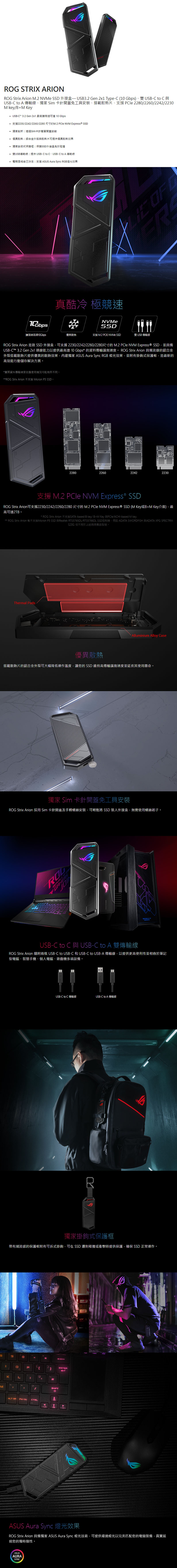 ↪ ROG Strix Arion提供 USB-C to C、USB-C to A 線/支援 ASUS Aura Sync RGB效果