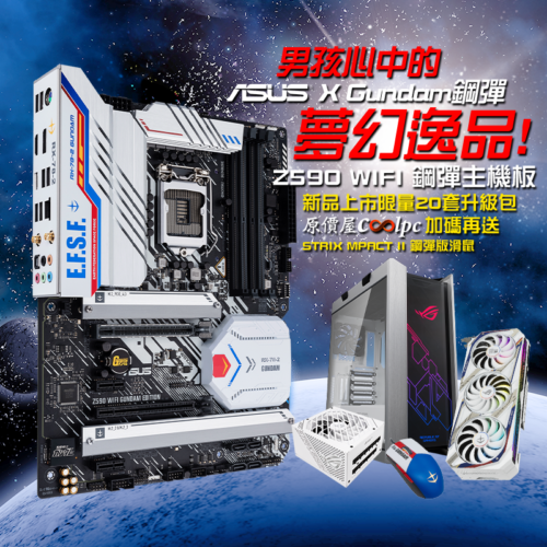 【新品+搶購】男孩心中的夢幻逸品!華碩Z590 WIFI鋼彈聯名主板新品上市升級包限量開搶。