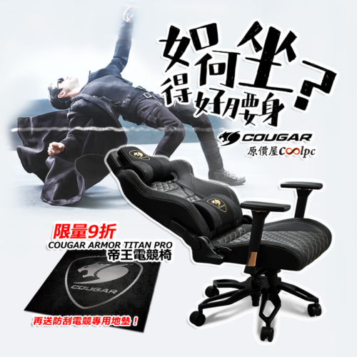 加大加厚…帝王般享受!COUGAR ARMOR TITAN PRO 泰坦電競椅 9折限量優惠!