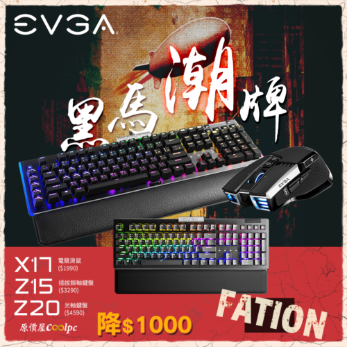 黑馬電競來襲!EVGA Z15 插拔銀軸 / Z20 光軸 / Z17 滑鼠單品下殺!