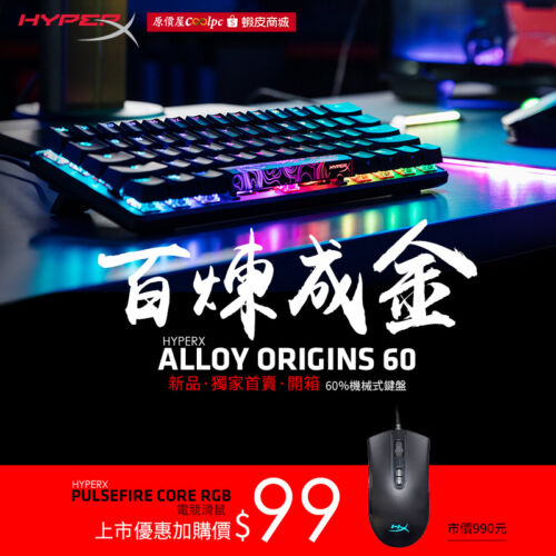 【獨家首賣+開箱】HyperX Alloy Origins 60 機械式鍵盤!百煉成金上市優惠!