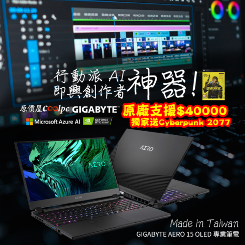 行動派 AI 即興創作者!GIGABYTE AERO 15 OLED 專業筆電現省四萬!