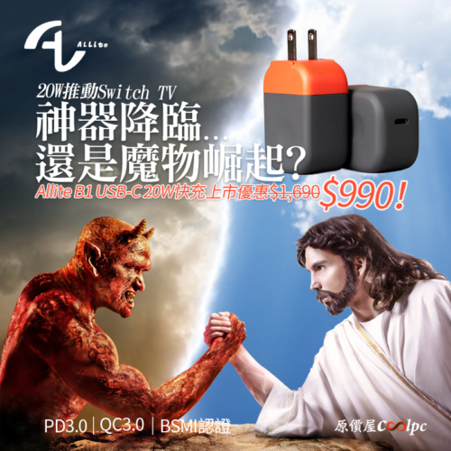 【新品上市+促銷】推動Switch TV的20W小怪物! Allite B1 USB-C 20W快充登場。