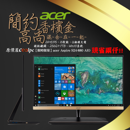 5.97mm纖薄簡約,十項全能的高尚品味!Acer Aspire S24-880 AIO主機省兩仟!