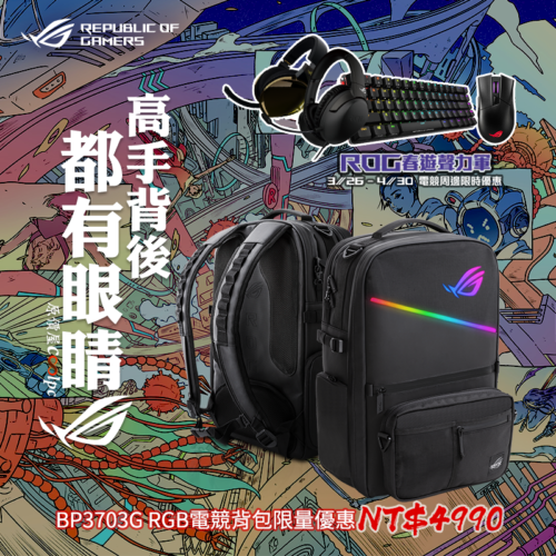 高手背後都有長眼睛。華碩ROG BP3703G RGB電競背包限量免五仟!
