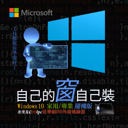 自己的窗自己裝,來原價屋買Win10中文家用/專業隨機版送外接燒錄器。