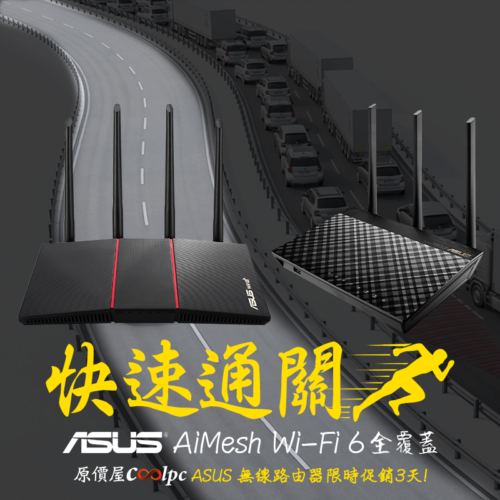 AiMesh Wi-Fi 6 網路快速通關!ASUS 無線路由器限時促銷 3 天。