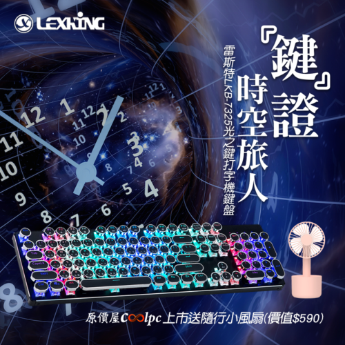 「鍵」證時空旅人的時刻!雷斯特LKB-7325光之鍵打字機鍵盤送隨行小風扇。
