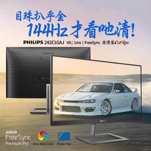 目珠扒乎金,144Hz才看吔清!飛利浦24吋242E1GAJ螢幕限時特價。
