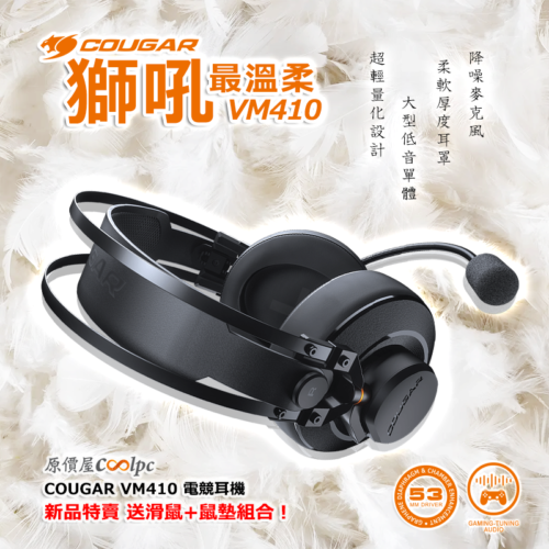 最溫柔的獅吼!COUGAR VM410 電競耳機 新品送滑鼠組合!