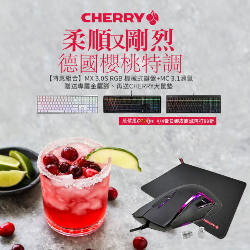 德國特調又順又剛烈!CHERRY MX 2.0S/3.0S RGB鍵盤+MC3.1滑鼠優惠組!