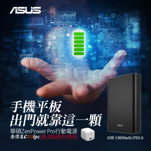 手機平板出門就靠這一顆。華碩ZenPower Pro行動電源送UIBI迷你快充。