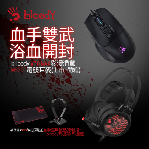 【上市+開箱】血手雙武,浴血開封!bloody W70 MAX滑鼠/M620T耳麥上市優惠!
