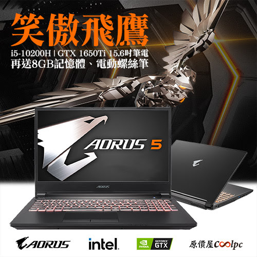 技嘉笑傲飛鷹!AORUS 5 十代i5 GTX1650Ti獨顯筆電三萬有找再送好禮。