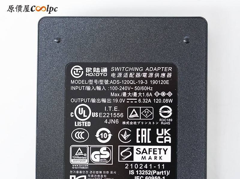 供電的部分提供獨立的變壓器(ADS-120QL),支援100-240V國際電壓,螢幕端是圓頭設計,電源線一端則是米老鼠頭設計。